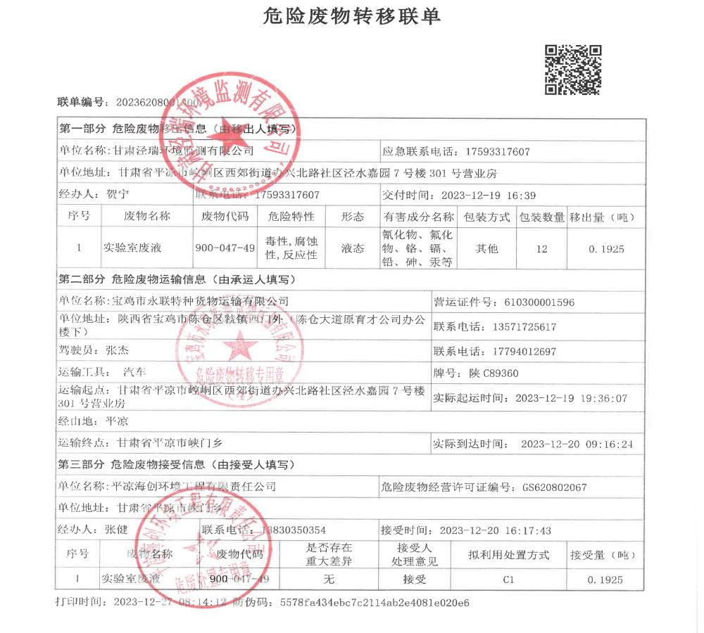 根據(jù)《中華人民共和國固體廢物污染環(huán)境防治法》(2020年9月1日修訂)的相關(guān)規(guī)定,甘肅涇瑞環(huán)境監(jiān)測有限公司依法及時公開固體廢物污染環(huán)境防治信息,主動接受社會監(jiān)督。